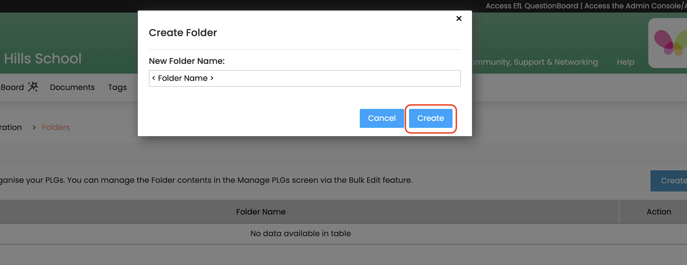 5) Name the Folder and Click Create