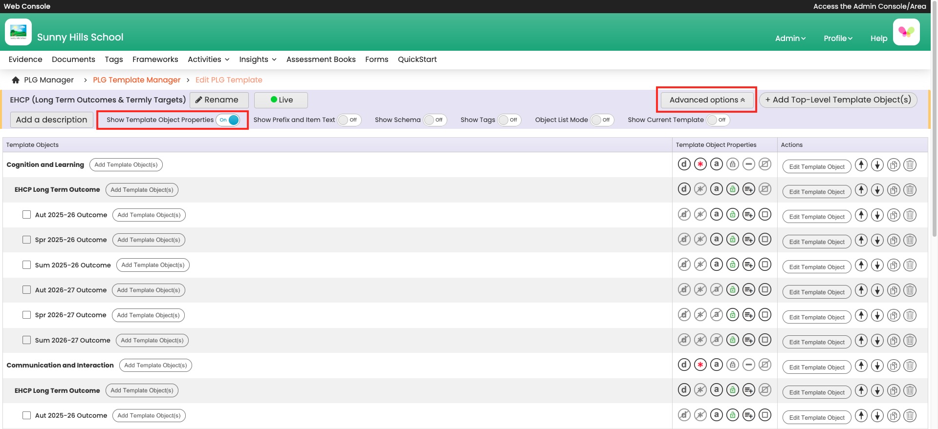 PLG Wizard: How to update your template for adding next year / term Outcomes. (Change which Items are available to be used to create New Framework Items)