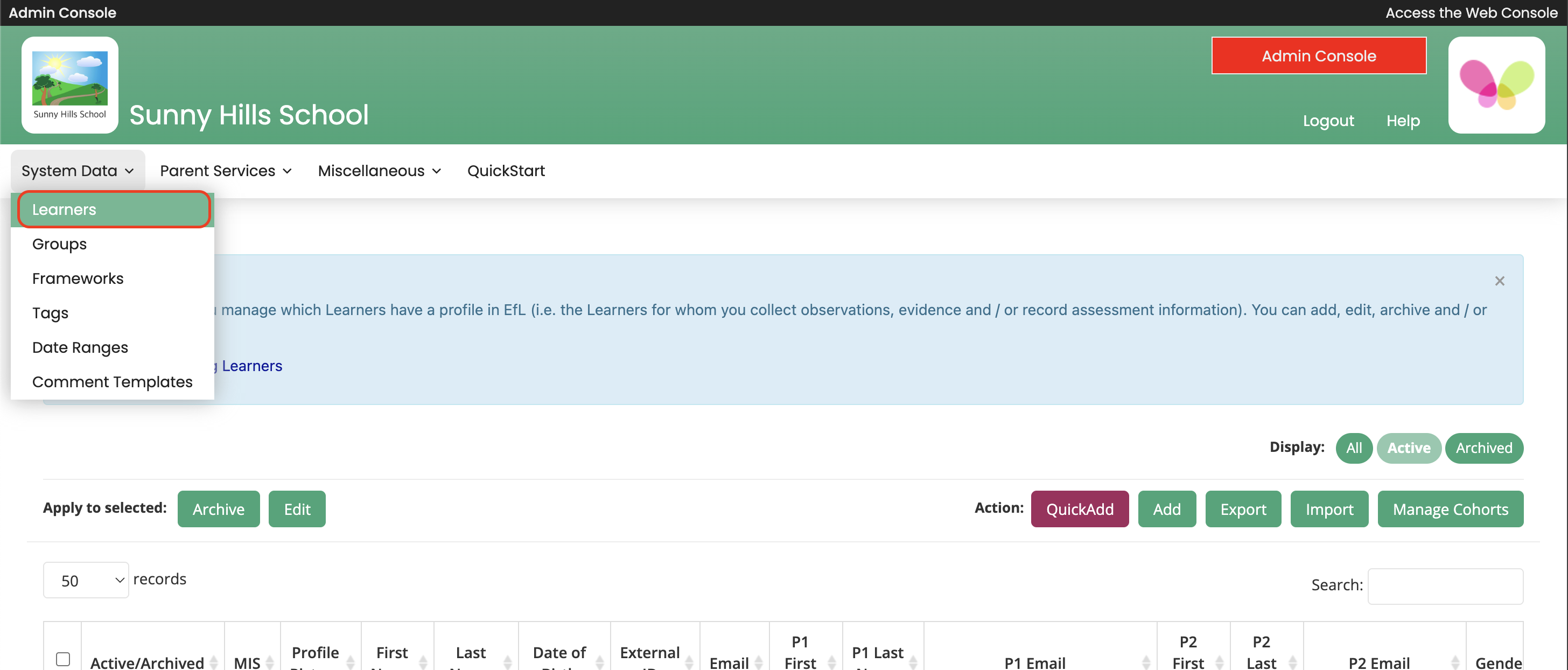 - Hover over Admin (top right) and Click Access the Admin Console / Area